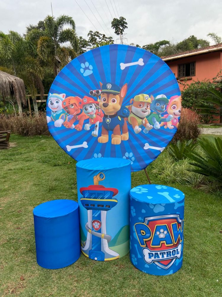PEGUE E MONTE COM 3 CILINDROS COM CAPAS, 1 ARCO COM CAPA, 4 BANDEJAS DE TAMANHOS DIVERSOS, E 1 TAPETE