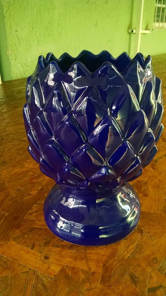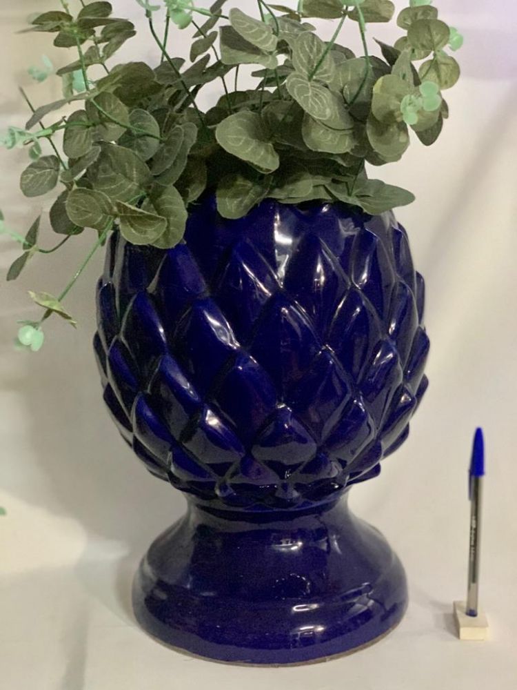 VASO ALCACHOFRA, CERAMICA, AZUL COBALTO, 20 X 31 CMS